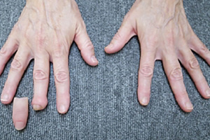 (右2指手指義手・左2,3,4指手指義手ショートタイプ)